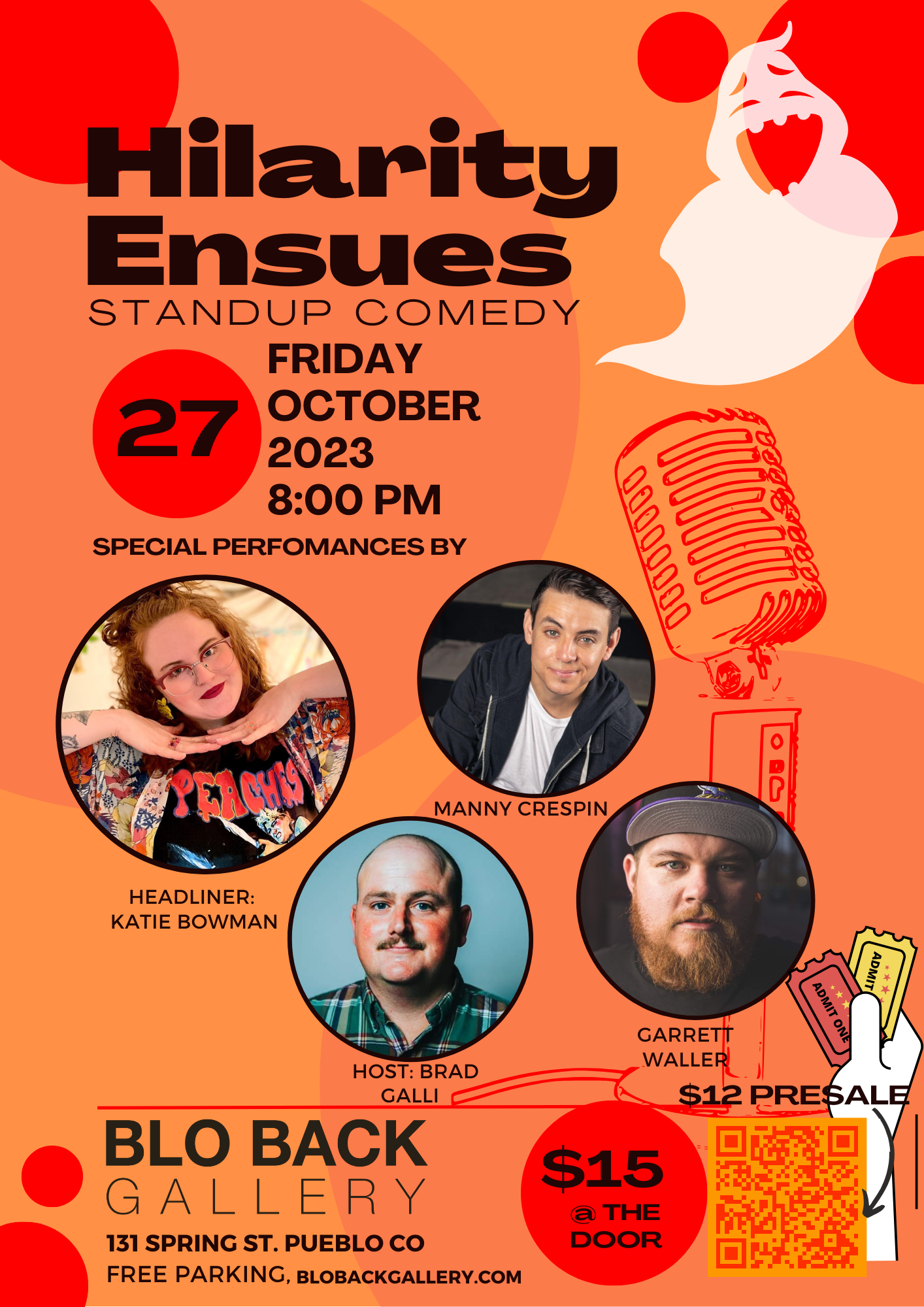 Back to All Events Headlining Blo Black Gallery (Pueblo, CO) Friday, October 27, 2023 8:00 PM 10:00 PM Blo Black Gallery 131 Spring Street Pueblo, CO, 81003 United States (map) Google Calendar ICS