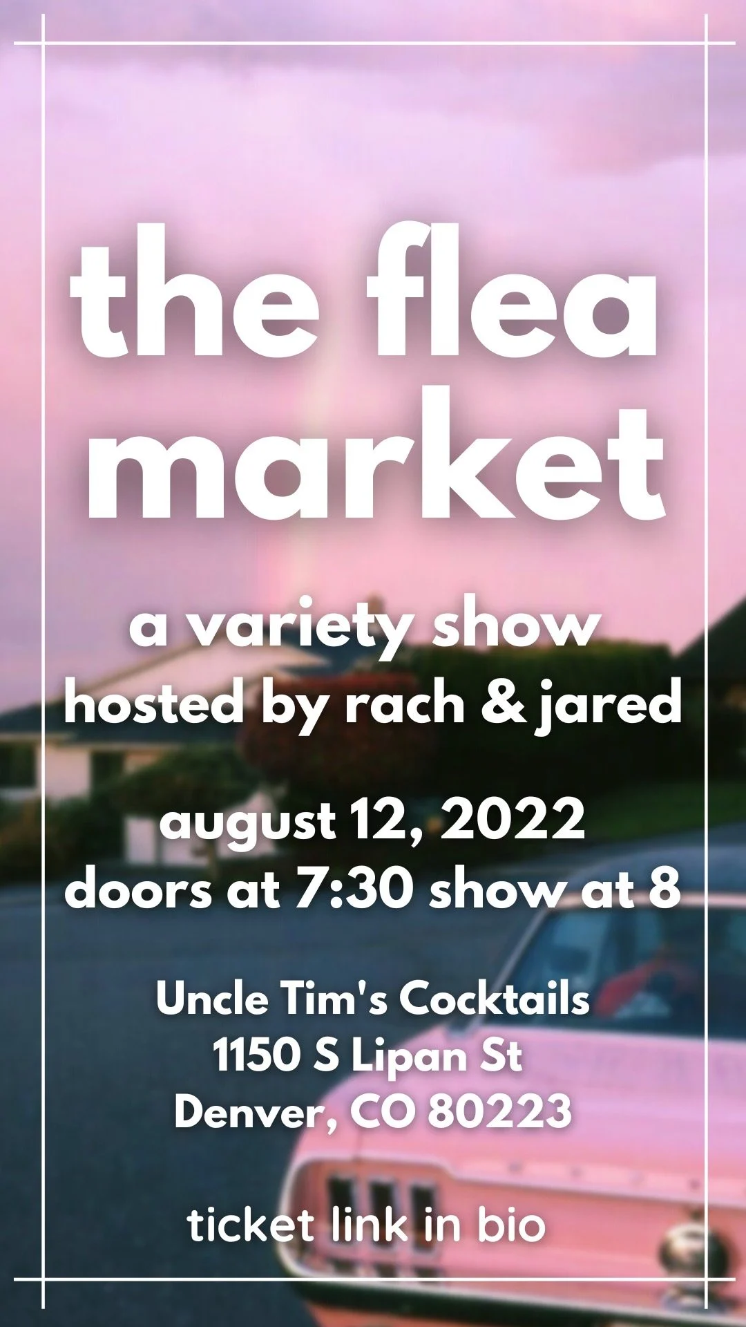 Headlining The Flea Market Friday, August 12, 2022 7:30 PM 9:30 PM Uncle Tim’s Cocktail bar 1150 South Lipan Street Denver, CO, 80223 United States (map) Google Calendar ICS